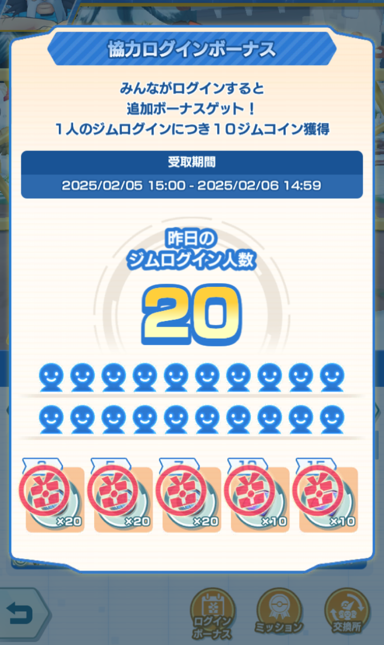ジムミッションについては、スタミナを使うなどのコツコツやっていれば誰でも達成できるものばかりで、協力ミッションも無理なくSランクに行けそうなラインだったのでこれは良かったです(レジェアド〇〇連勝みたいな初心者お断りシステムだったら炎上もの)。